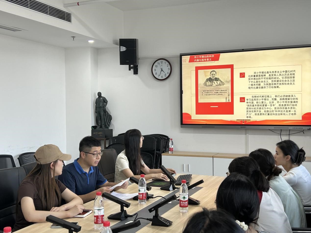 党课学习活动围绕邓小平同志对党和人民做出的卓越贡献、邓小平理论的科学内涵与指导意义、新时代新征程的奋斗目标与行动要求三大主题展开。活动中,刘艳霓书记和曾欢书记分别领学了习近平总书记的重要讲话内容,强调邓小平理论作为马克思主义中国化重要成果的地位,为我国改革开放和现代化建设提供了科学指南。通过学习,学生党员们对邓小平同志在中国革命、建设、改革事业中的巨大贡献及他留下的宝贵精神财富有了更加全面而深刻的认识。