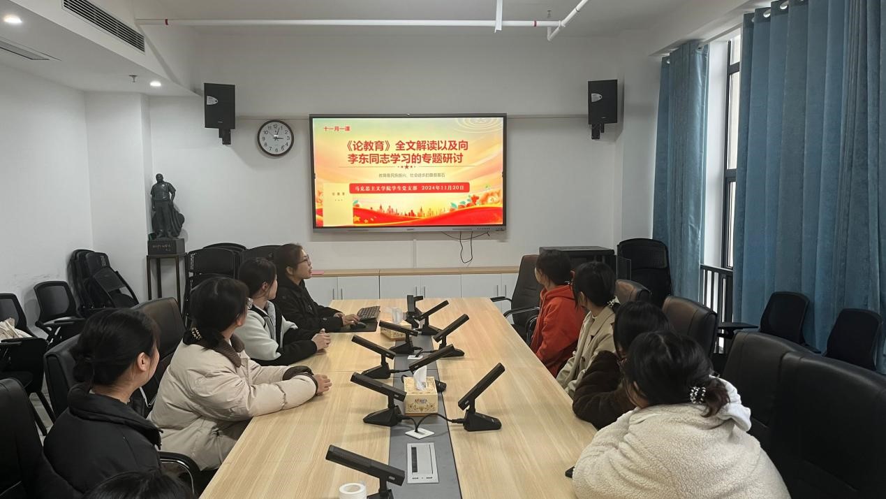 为深入学习贯彻党的教育方针,全面学习领会习近平总书记关于教育的重要论述,11月20日下午,伟德国际victor1946学生党支部组织全体党员及预备党员在百熙楼1010会议室开展题为“《论教育》全文解读以及向李东同志学习的专题研讨”的“一课”学习活动,本次主题党课由党务办工作办公室主任黎秀文主讲。