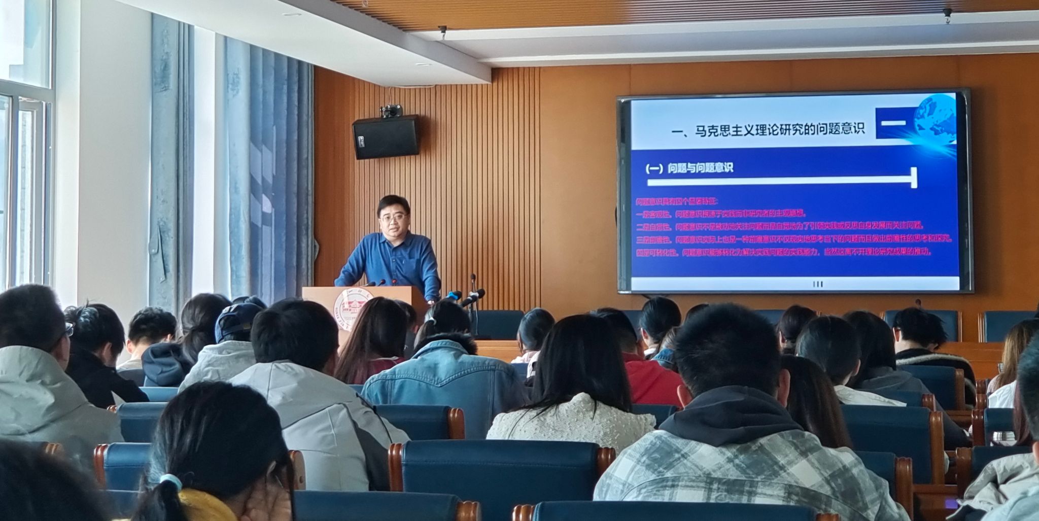 1024日下午,上海交通大学伟德国际victor1946教授、博士生导师史宏波教授应邀来我院讲学,主题是“马克思主义理论研究的问题意识和系统思维”。本次讲座聚焦马克思主义理论专业论文的写作核心痛点,结合史教授自身深耕思想政治教育研究的丰富经验,为全院师生解析“如何以问题意识破解论文套路化”“如何以精准用词夯实选题根基”,兼具理论深度与实操指导。讲座由我院副院长胡慧娥主持,我院艾楚君教授、刘慧芳博士、肖佳博士等教研骨干以及研究生50余人参会。