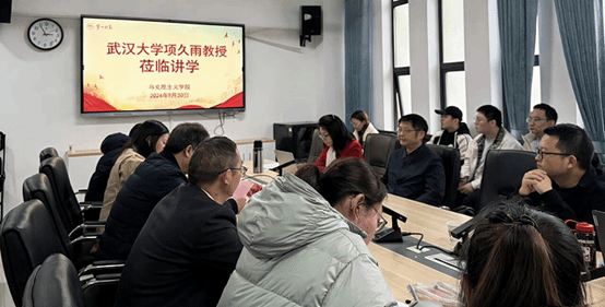 3月30日下午,教育部“长江学者”特聘教授、武汉大学主流意识形态研究院院长项久雨教授应邀来院讲学,讲学主题为“文明交流互鉴的至理之道”。讲座由我院党委书记曾玉华主持,地点在百熙楼1010会议室,学院副院长王竹苗、胡慧娥及部分教师与全体研究生参会交流。