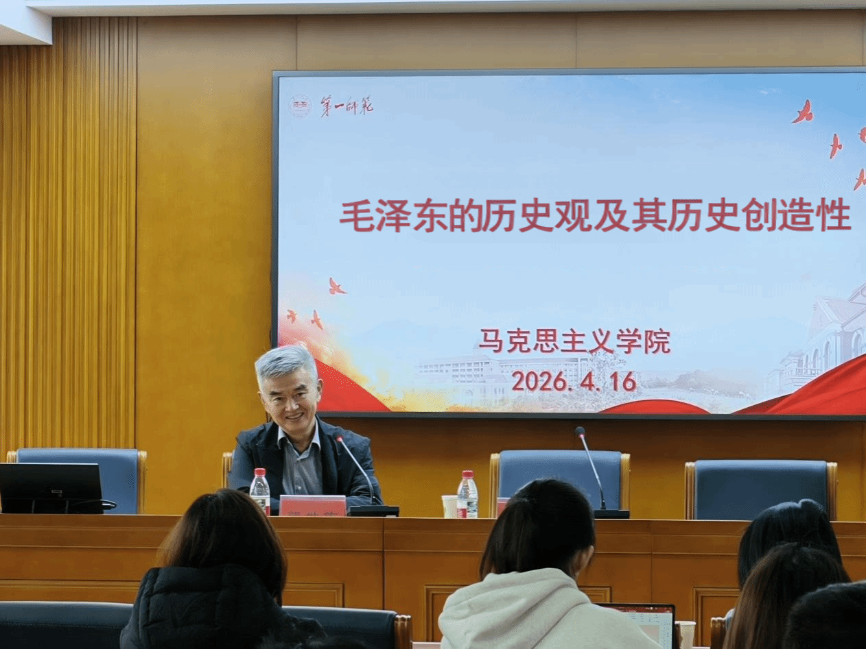 4月16日上午,同济大学特聘教授郭世佑老师应邀来马克思主义学院讲学,讲学主题为“毛泽东的历史观及其历史创造性”。讲座由我院党委书记曾玉华主持,地点在百熙楼1013会议室,学院部分教师及全体研究生参会学习。