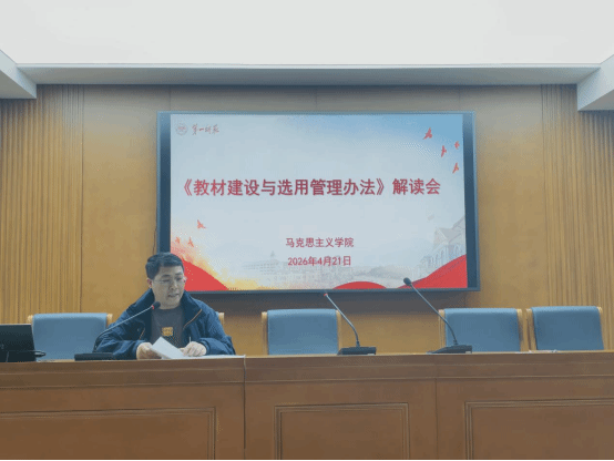 针对《教材建设与选用管理办法》,副院长王竹苗强调了教材建设在本科教学中的重要意义,鼓励全院教师积极参与教材申报工作,明确申报流程、申报要求及院内评选标准,引导教师立足马克思主义理论学科特色,打造高质量、有特色的优质教材,助力提升教学质量。