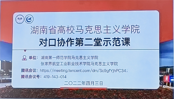 4月3日下午,我院与张家界航空工业职业技术学院马院联合举办对口协作线上示范课,张家界航空工业职业技术学院马院全体思政课教师通过线上直播参加培训。