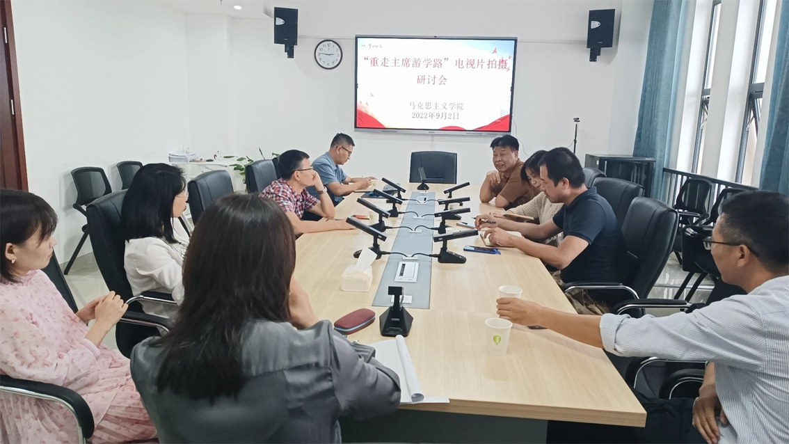 9月2日,伟德国际victor1946邀请到湖南教育电视台编导来到马院,共同商讨“重走主席游学路”电视片的拍摄事宜。中南大学教授曾长秋、湖南教育电视台易仙、马院党政领导班子陈明、阮东彪以及部分教师代表参加。