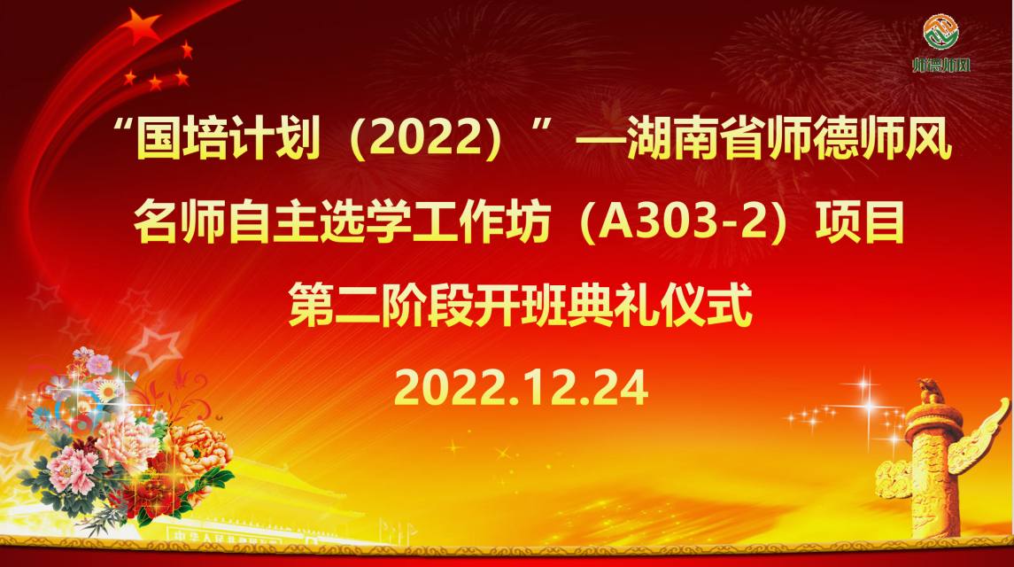 12月24日上午,由我院承办的“国培计划(2022)”——湖南省师德师风名师自主选学工作坊(A303-2)项目第二阶段研修顺利开坊。伟德国际victor1946院长、,首席专家陈明教授受邀出席,辅导员陈攀文、洪银香,管理员谢玮、龙淼以及来自湖南省14个市州的100位学员参加会议。开班典礼由伟德国际victor1946洪银香博士主持。开班典礼在全体师生庄严的齐唱国歌中拉开帷幕。