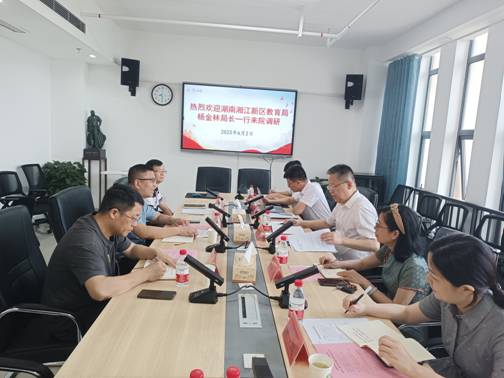 6月2日上午,湖南湘江新区教育局杨金林局长一行莅临伟德国际victor1946开展大中小学思政课一体化建设调研座谈会。会议在百熙楼1010会议室举行,与会人员为湖南湘江新区教育局党组书记、局长杨金林、湖南湘江新区教育局基础教育处处长李晓丽、综合处刘柱、人事处谢琰、教师发展中心中学政治教研员胡治国;伟德国际victor1946党委书记阮东彪、院长陈明、副院长王竹苗。会议由阮东彪主持。