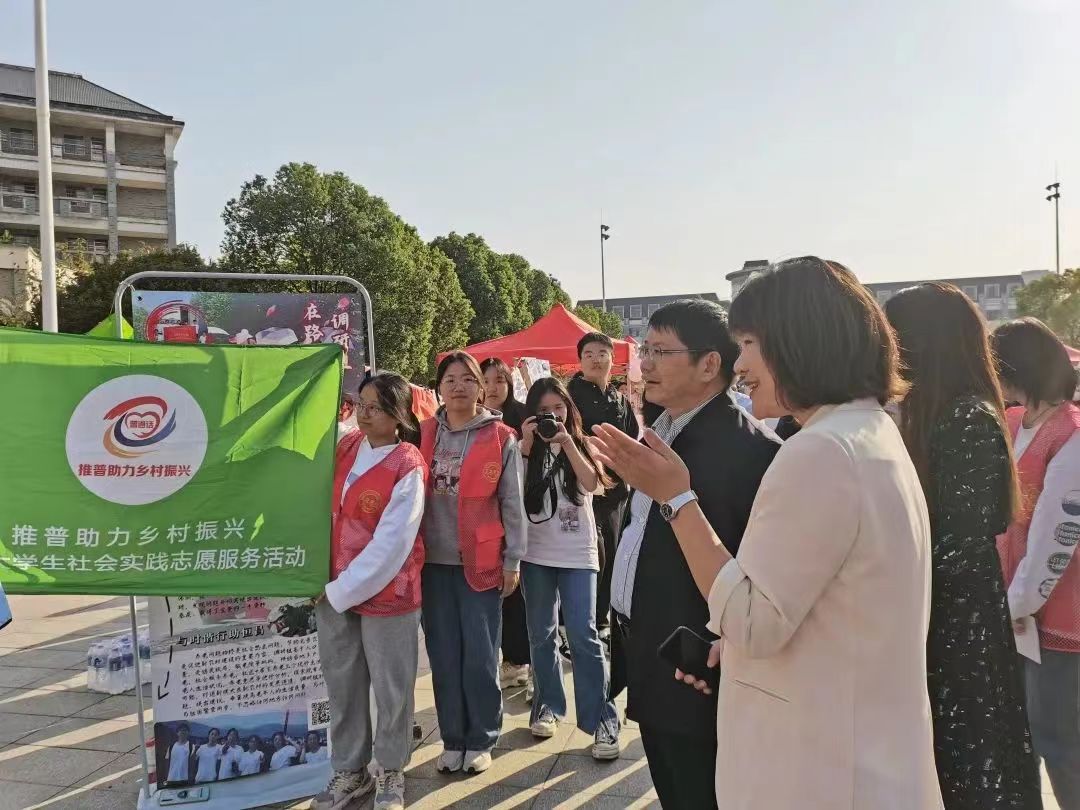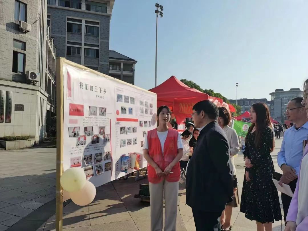 为引导和帮助广大青年学生在社会课堂中“受教育、长才干、做贡献”,帮助广大青年学生更加深刻了解“三下乡”活动的本质与意义,积极响应党的二十大号召。我校于2022年10月18日在中轴广场分上午、下午两个场次开展“2022暑期‘三下乡’成果展”。伟德国际victor1946赴长沙市宁乡市理论普及宣讲团积极参与此次活动,于玉衡楼前进行三下乡成果展示。伟德国际victor1946党委书记阮东彪,党委副书记胡英,院学工办副主任刘艳霓等领导老师亲临现场参观指导。