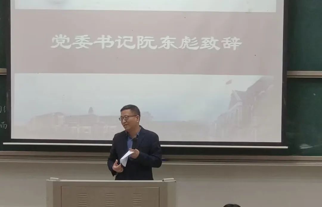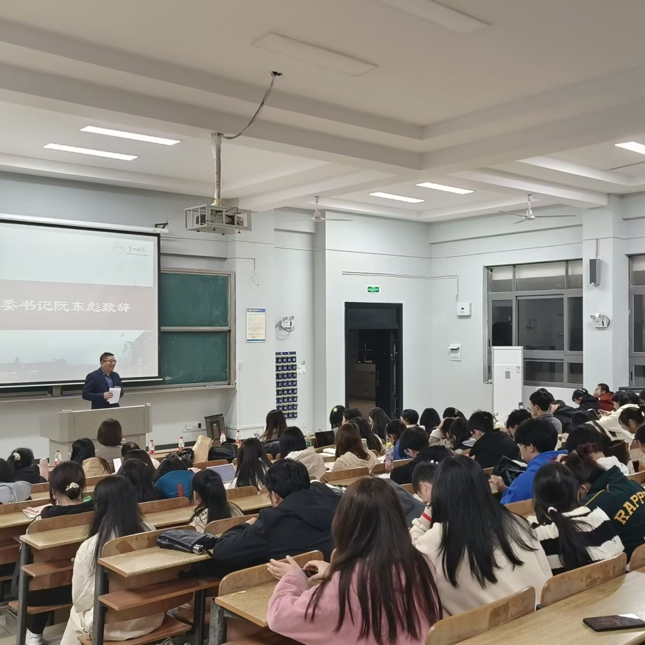 首先,院党委书记阮东彪为本次动员会致辞。阮书记从读研深造、就业发展、个人成长等方面,强调了通过英语四级考试对于大学生未来成长发展的重要意义,鼓励各位同学拼搏向上,扎实根基,明确目标,制定合理的学习计划,并对各位同学寄以诚挚的祝福。