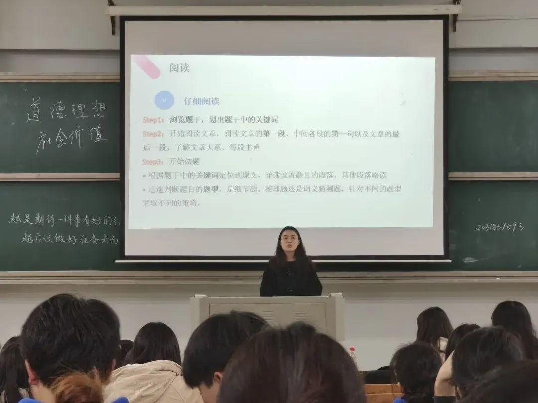 表彰结束后,外国语学院孙玉萍老师、谭建慧老师就题型设置、考试流程等方面对同学们进行了针对性的四级考前指导和疑问解答,强调在考试中要放松心态、细心认真。