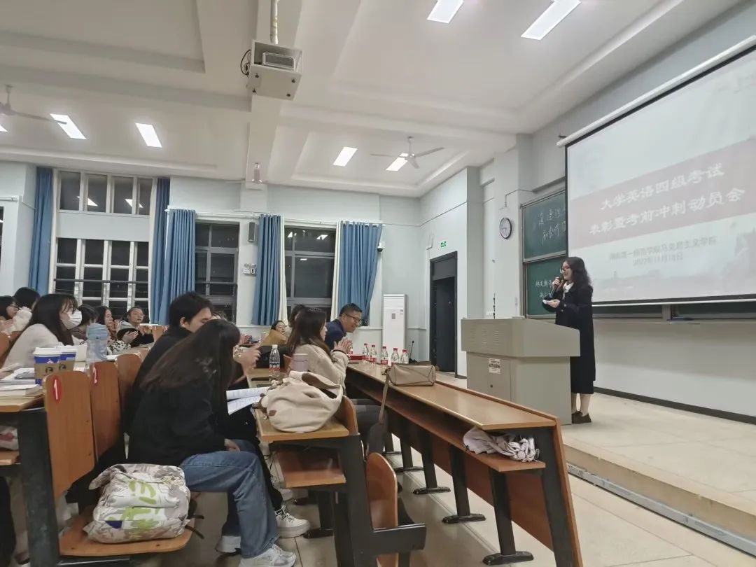为进一步加强学风建设,提高英语学习效率,迎接即将到来的大学英语四级考试,伟德国际victor1946于11月18日晚6点在怀中南209举办“大学英语四级考试表彰暨考前冲刺动员会”。伟德国际victor1946党委书记阮东彪、党委副书记胡英、学工办副主任刘艳霓莅临本次大会,外国语学院孙玉萍老师、谭建慧老师为此次大会进行主讲,我院一百余名同学参加。