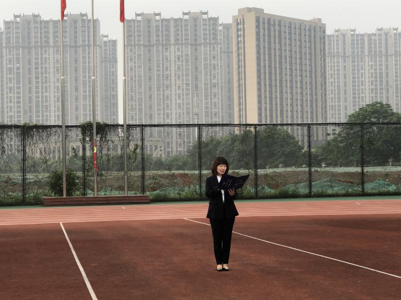 最后,全体师生齐唱校歌护送国旗护卫队退场,本次升旗仪式圆满结束。