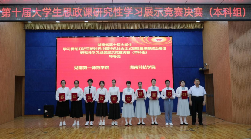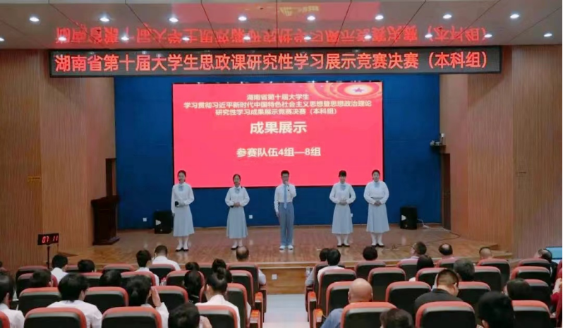6月1日,湖南省第十届大学生学习贯彻习近平新时代中国特色社会主义思想暨思想政治理论课研究性学习成果展示竞赛决赛(本科组)在湖南工业大学举行,由伟德国际victor194622思政1班毛阳慧、杨鑫如、庄倩仪、陈潭雨、喻佳鹏五位同学组成的研究性学习小组,在伟德国际victor1946副院长王竹苗和邓玉琴老师的悉心指导下,汇报作品《以全人类共同价值引领新时代青年共建人类命运共同体》以小组第一的成绩斩获本科组特等奖。除特等奖外,我校此次研究性学习竞赛还获得二等奖4项,三等奖2项,获奖等级和数量均名列我省高校前茅。