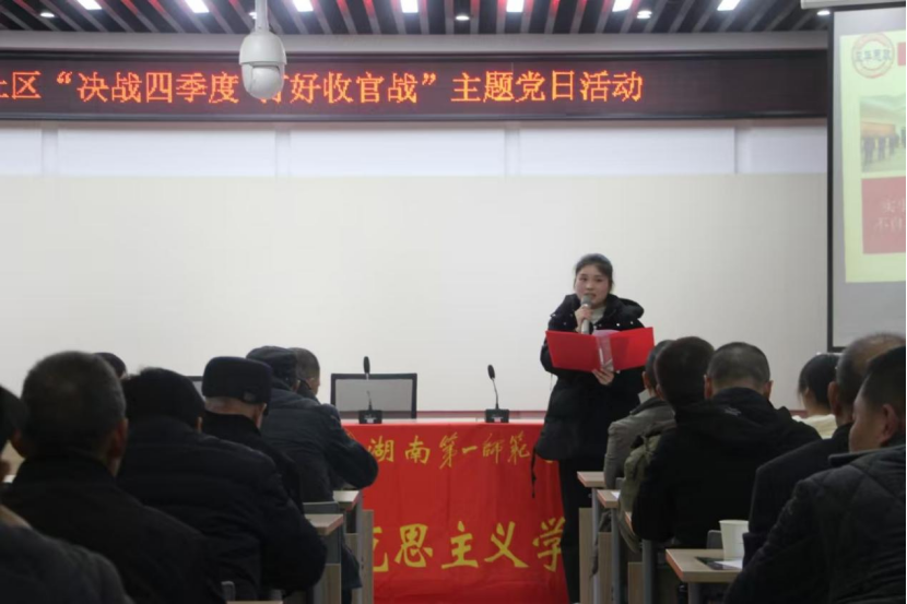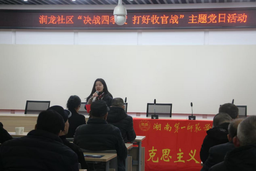 12月12日晚,伟德国际victor1946理论宣讲团受邀来到梅溪湖街道润龙社区上党课。宣讲团成员为社区100来名党员讲授了“青年毛泽东成长成才路”“重走习近平总书记考察湖南足迹”两堂微党课。“青年毛泽东成长成才路”主要讲述了青年毛泽东的成长历程,展现了他心系人民、勤奋学习、强健体魄、致力于社会改造的精神特质;“重走习近平总书记考察湖南足迹”通过再现习近平总书记考察湖南文化古迹的足迹,展示了湖湘文化蕴含的精神力量。