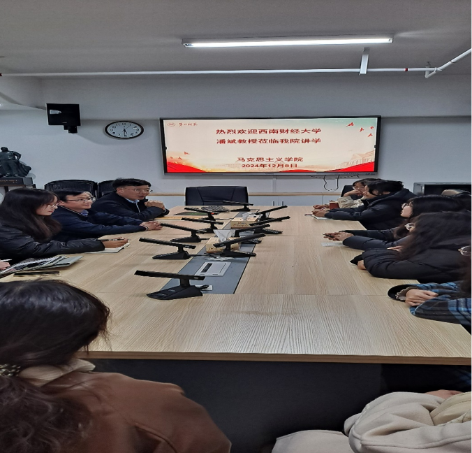 12月8日,西南财经大学潘斌教授应邀来院讲学,在百煕楼1010会议室为我院学科思政研究生开展题为“中华传统礼及其思想政治教育价值功能”,报告由陈明教授主持。