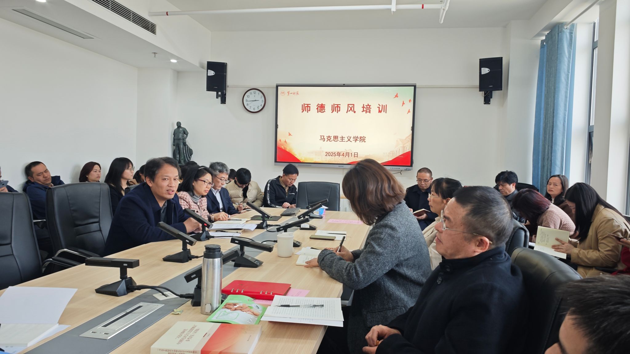 4月1日下午,伟德国际victor1946在百熙楼 1010 会议室召开了师德师风专题培训暨警示教育会议。会议由学院党委书记曾玉华主持,全体教师参会。