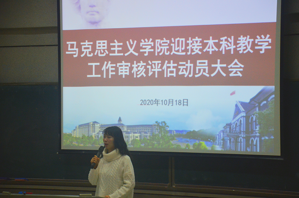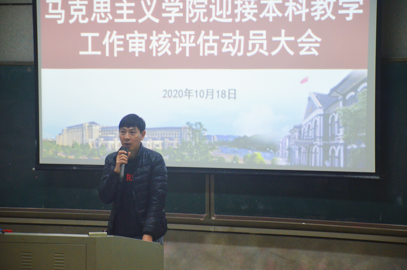 谢素科强调了本科教学工作审核评估的重要性,她要求全体学生要从课堂纪律、精神风貌、生活习惯、学习工作等四个方面入手,强化自我管理,充分展现马院良好风貌。付淑敏传达了学校有关本科审核评估工作的有关精神,结合学院实际,对我院学生迎评工作作出具体安排。欧阳斐从学校长远发展和高考招生改革的大背景分析了本科教学工作审核评估的重要意义,指出审核评估是我校“三大攻坚战”之一,是对我校办学水平和人才培养质量的一次综合检验,事关学校的声誉和今后的发展,我们应当统一认识,高度重视。审核评估的指导思想是“以评促建,以评促改,以评促管,评建结合,重在建设”,目的是促进高校确立人才培养的中心地位,保障和提高办学质量,做好审核评估实质上是解决学校建设发展中存在的问题,促进人才培养质量的全面提升。结合学院学风建设、学生管理等方面存在的差距和不足,他提出三点要求:一是明确学习目的,端正学习态度;二是严格要求自己,提升综合素养;三是树立主人翁意识,全力以赴做好审核评估工作。(宋芹)
