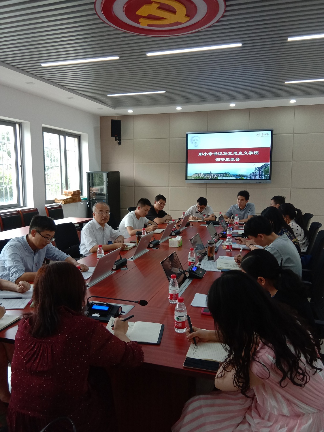 2019年9月25日下午,校党委书记彭小奇在伟德国际victor1946开展“不忘初心、牢记使命”主题调研。伟德国际victor1946党政领导班子成员、党支部书记、教研室主任和部分教师代表参加调研座谈会。