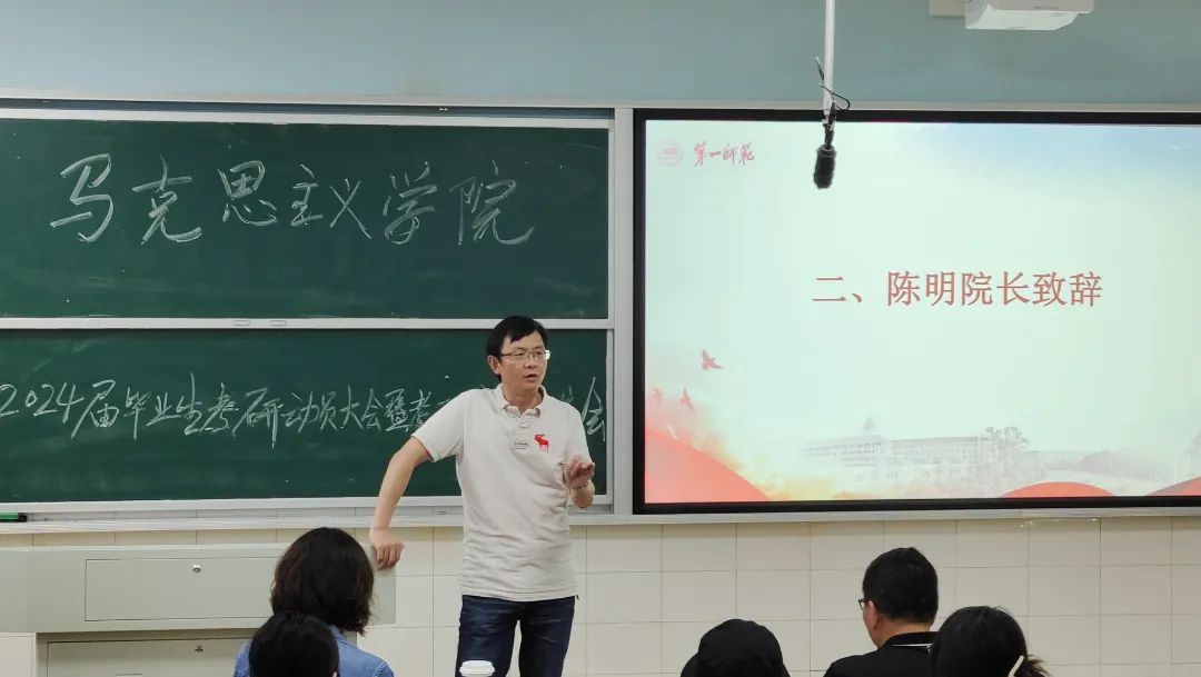陈明院长肯定了2019级同学取得的丰硕考研成果,鼓励准备考研的学生做好未来规划。