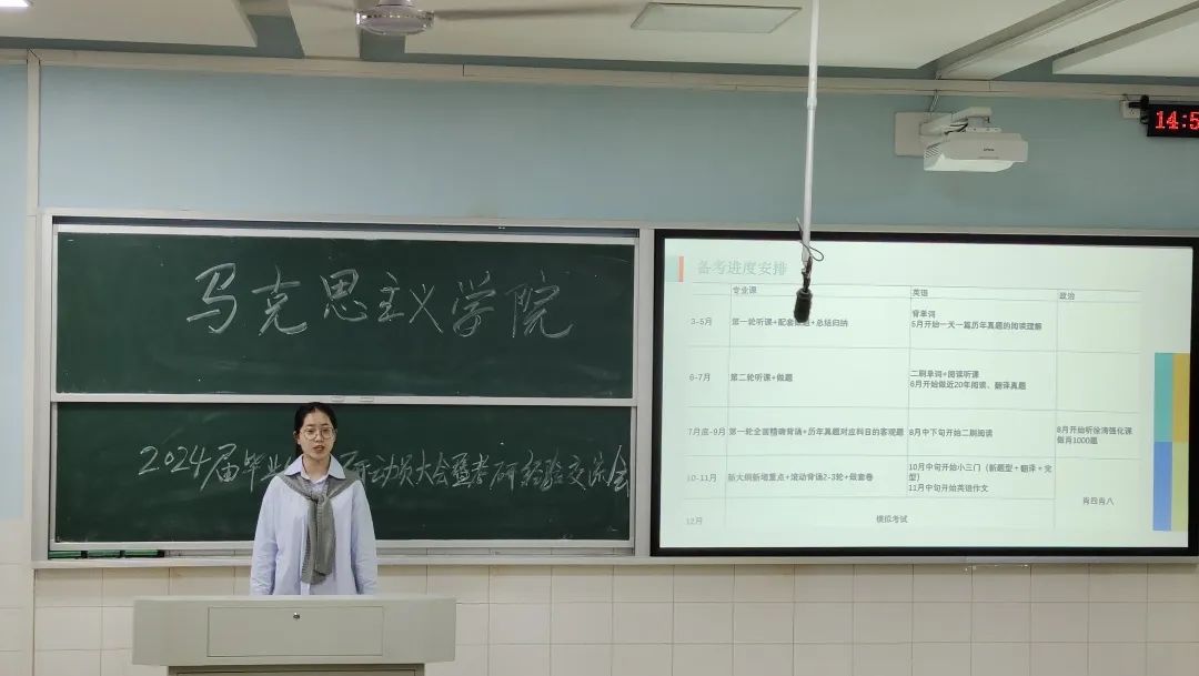 青春意味着无限可能。党的二十大报告中,习近平总书记强调“青年强,则国家强”,指出“当代中国青年生逢其时,施展才干的舞台无比广阔,实现梦想的前景无比光明”,充分体现了党对青年一代的亲切关怀和殷切期待,为青年一代健康成长指明了努力方向。此次考研交流会就为正处在人生新选择的大学生们指明了方向,相信通过本次考研经验交流会,2020级思政1班的全体同学都将以“好学”为前提,以“活学”为方法,以“深学”为关键,练就过硬学习本领,努力奋斗,不断进取,肩负起民族复兴的时代重任。