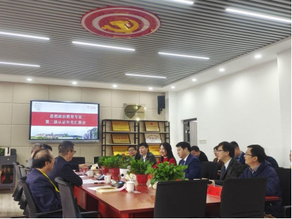 首先,思想政治教育专业负责人钟佩君教授做了汇报,她主要围绕专业历史沿革、特色优势、认证促进和改进方向四个方面而展开。其次,专家提问专业负责人及其它成员。专业负责人钟佩君等侃侃而谈,对答如流。彭院长对我院思政教育专业认证工作给予了高度评价:院部领导亲力亲为,认证工作非常扎实,自评报告非常规范,广大师生热情参与。彭院长还提出了殷切期望,指出:培养面向基础教育的优秀思政骨干教师,离不开高校优秀教师团队的努力,我院老师应积极提升自我专业素养,教研结合,教思结合。本次会议在与会人员欢快、热烈的交谈中落下了帷幕。(通讯员:宋芹)