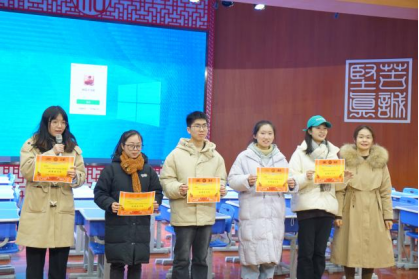 会议第三项,观看教育实习纪录片后,明德麓谷学校彭玉娜书记为优秀实习老师安美儒、曾佳、刘凌、欧阳琦、康子妍颁发荣誉证书。