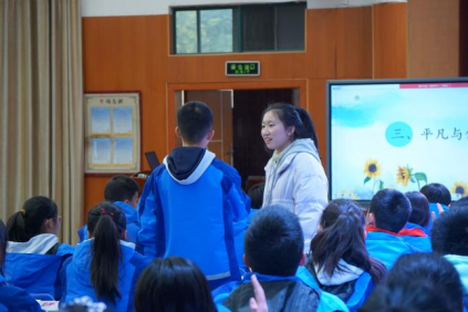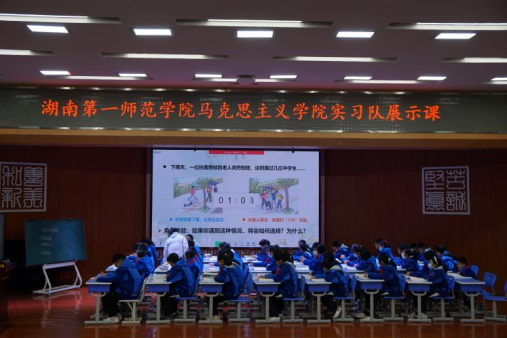 会议第一项,由实习老师安美儒、曾佳先后在明德麓谷学校初中部C2308班和小学部X2001班进行《活出生命的精彩》《正确认识广告》的“道德与法治”课例展示。