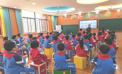 在见习临近尾声之时,全体师生共同观看学校自制红色电影《庚伢子》,在光影中探寻思政教育与影视美育的融合路径。随后,李思敏老师以《多彩的活动》作文课为例,展示了“AI+教育”智慧课堂的创新实践,体验到了“智能作文批改系统”、“虚拟写作场景”等技术手段,呈现了未来课堂的无限可能。