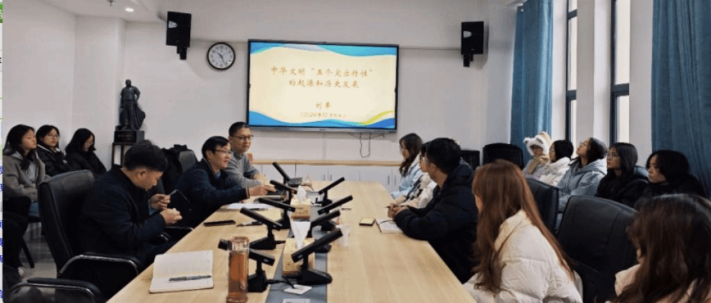 129日上午,中国社会科学院哲学研究所研究员、中国哲学史学会秘书长刘丰教授应邀来我院讲学。讲学主题为“中华文明五个突出特性的起源及其历史发展”,地点在百熙楼1010会议室,由我院院长陈明教授主持,副院长王竹苗、胡慧娥、汪俐、吴承富等教师代表及20多名学生参与交流。