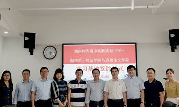 5月31日下午,我院与湖南师大附中高新实验中学实习基地签约仪式在百熙楼1010会议室举行。出席本次签约仪式的有高新实验中学校长姜小明、党总支书记陈文锋、教学副校长唐军、教学管理处主任王红波、校办副主任王妮娜以及学校优秀政治教师代表朱安娜;我院院长陈明、党委副书记(主持工作)阮东彪、学院党委副书记胡英、学院教学副院长王竹苗参加签约仪式。会议由王院长主持,阮书记做总结发言。