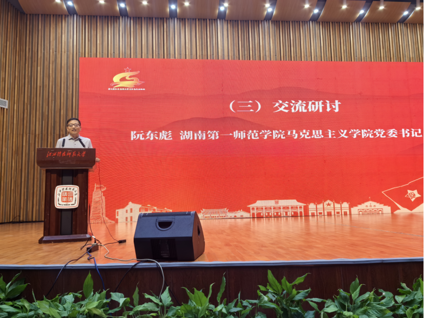 上午,在江西科技师范大学,阮东彪随全国的专家们一起观看第四届江西高校大学生红色文化论坛作品展示和文艺展演活动,见证全国红色文化育人共同体成立仪式。下午,出席“传承红色基因 培养时代新人”为主题的红色文化育人研讨会,并做《用好湖南一师红色资源 唱响爱国主义教育主旋律》的大会发言。他强调,以湖南第一师范的红色资源涵养新时代青年爱国情、铸牢新时代青年强国志、激发新时代青年报国行,落实好习近平总书记的殷殷嘱托“一师是开展爱国主义教育、传承红色基因的好地方,一定要保护运用好”。