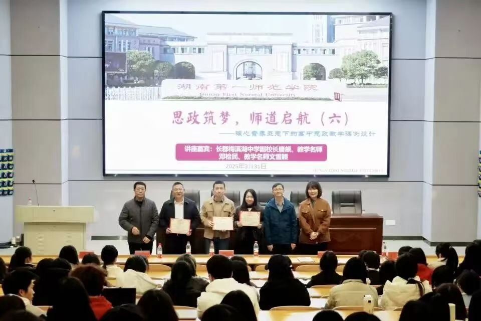 为扎实提升师范生教学实践能力,伟德国际victor1946于3 月31日晚在怀中南 110 报告厅成功举办 “思行先锋” 系列活动之高中思政教学课例设计专题论坛。长郡梅溪湖中学副校长唐頔、湖南省教学名师邓检民及骨干教师文雪颖受邀担任主讲嘉宾,学院院长陈明、党委副书记胡英、副院长王竹苗率 22 级思政专业1-4班、24级思政5班本科生及24 级学科思政研究生共300余人现场参与。本次活动由谢雨轩同学主持。