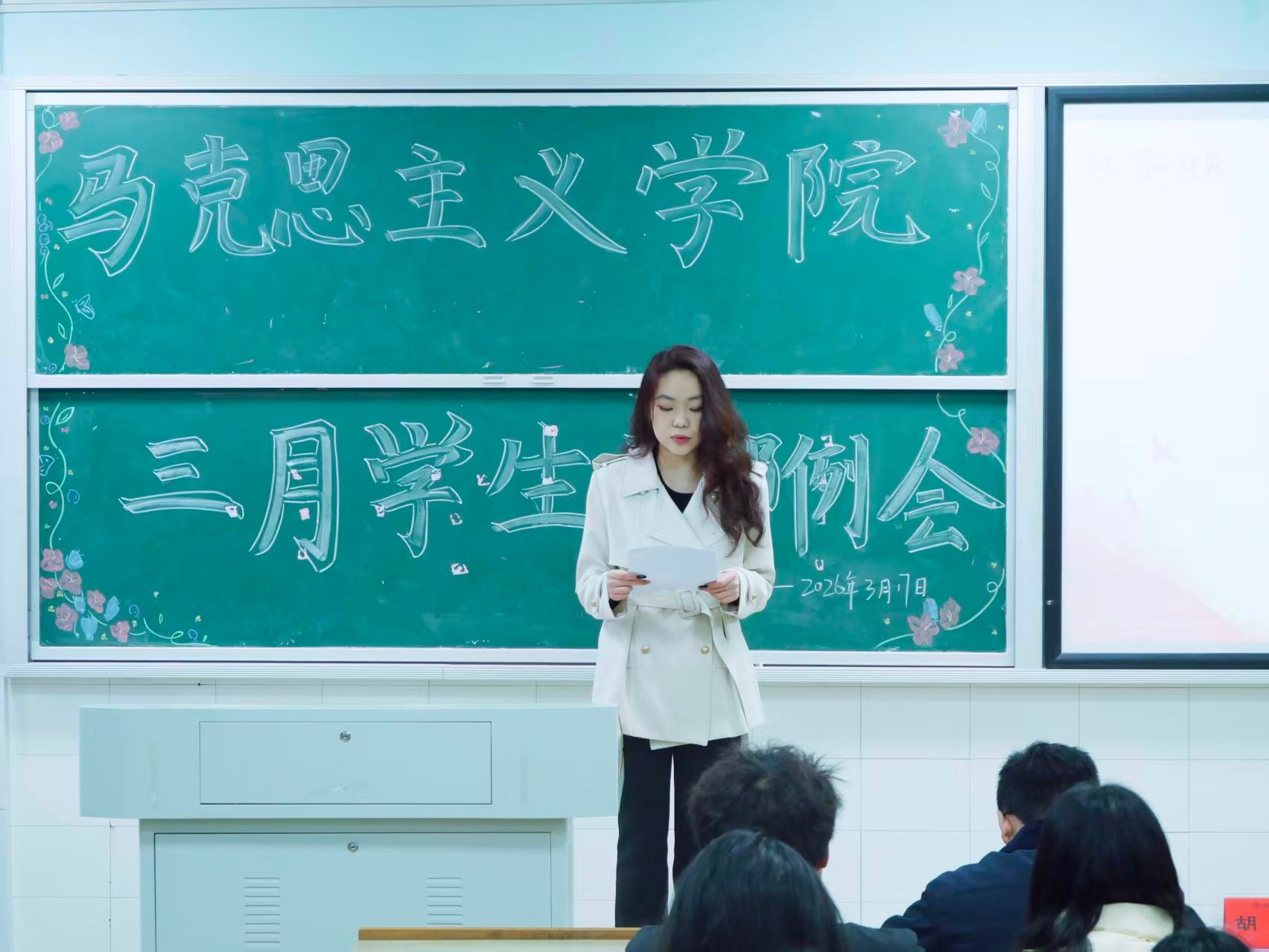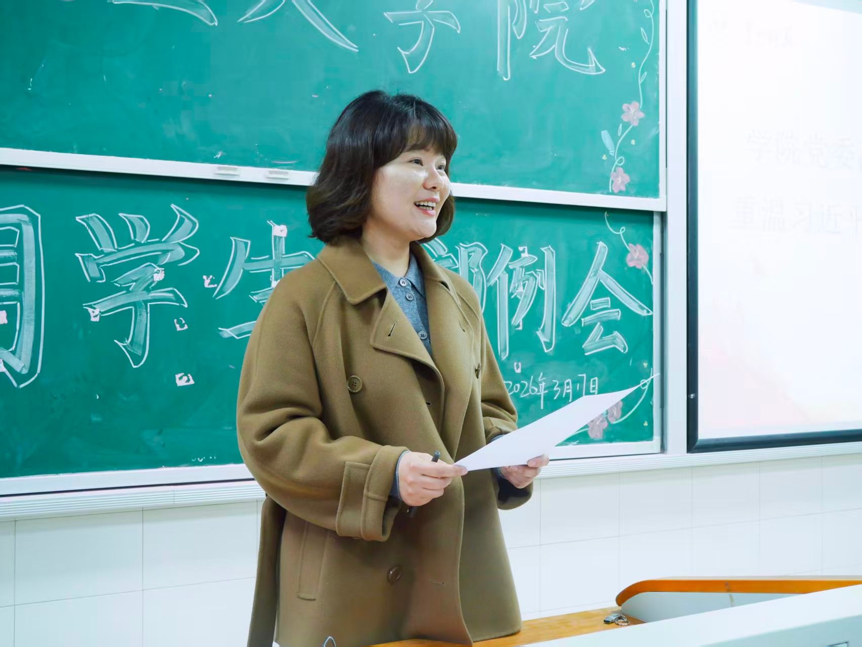 3月17日下午,伟德国际victor1946在怀中南101教室召开2026年春季学期第一次学生干部例会,重点组织全体学生干部重温习近平总书记考察我校重要讲话精神,凝聚思想共识、明确工作方向。院党委副书记胡英、学工办主任于澎、分团委书记刘艳霓以及2025-2026届全体学生干部参会。