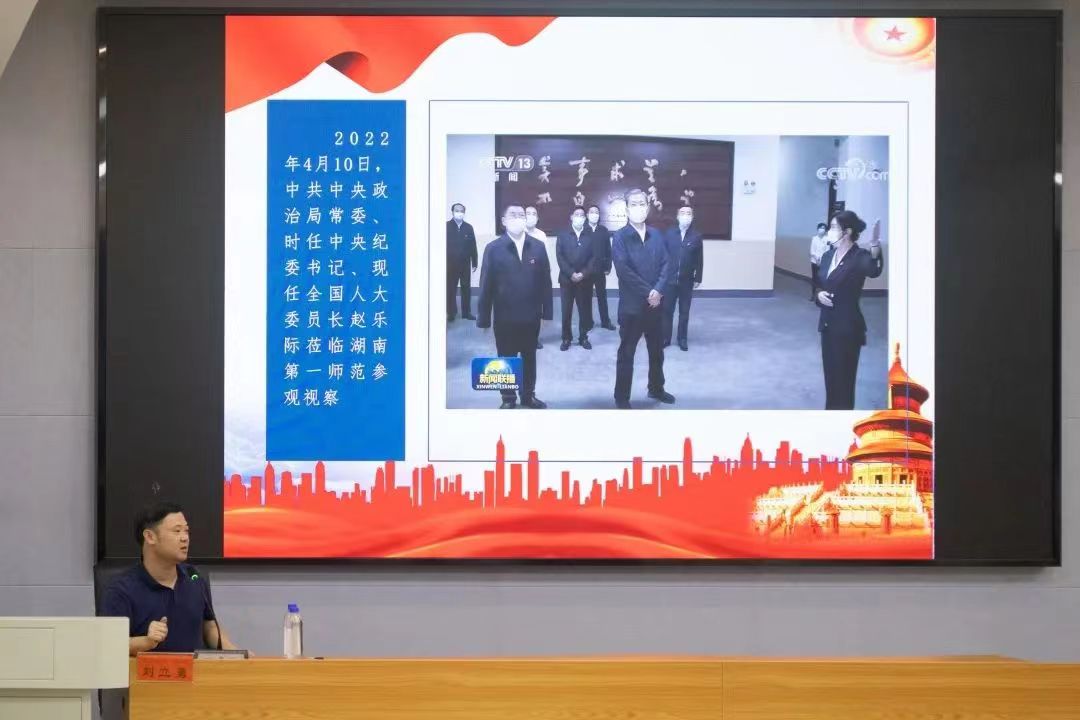 讲座伊始,刘教授以“长沙为什么这么吸引人?”为话题切入点,引出本次讲座主题。接着,以探究“为何半部中国史由湖南人写就?”抛出问题,详细阐述了湖南精神的深刻内涵,即心忧天下的情怀、敢为人先的担当、经世致用的意志、坚韧不拔的智慧。随后,刘教授介绍了学校“千年学府,百年师范”的历史渊源,着重讲述了青年毛泽东在第一师范的求学成才之路,从萌发“救国救民”初心,到上下求索、寻求救国真理。最后,刘教授围绕立奇志、交奇友、读奇书三个方面展开讲述,勉励同学们于伟人故事中感悟精神力量,做初心启航、探求真理的追梦者,做中流击水、浪遏飞舟的开拓者。