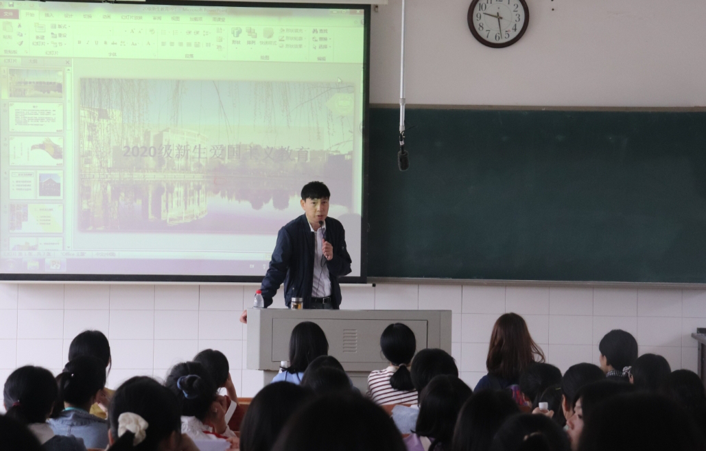 9月20日上午,伟德国际victor1946党总支书记欧阳斐在怀中南303为2020级新生开展校史校情及爱国主义教育。