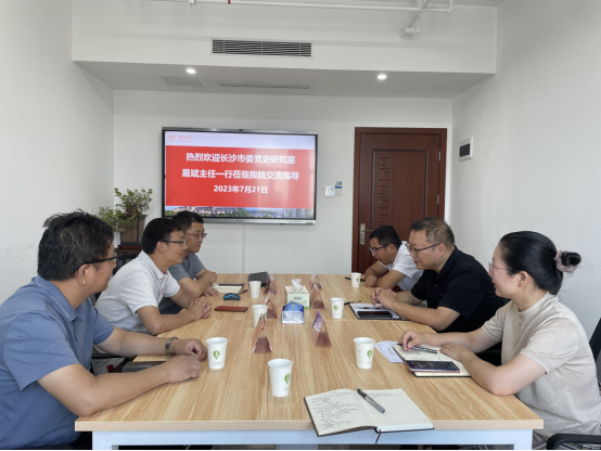 7月21日下午,长沙市委党史研究室副主任易斌、征研处处长曹馨尹一行围绕青年毛泽东研究莅临我院开展深度交流,座谈会由我院党委书记阮东彪主持,院长陈明、副院长王竹苗、胡慧娥等出席会议。