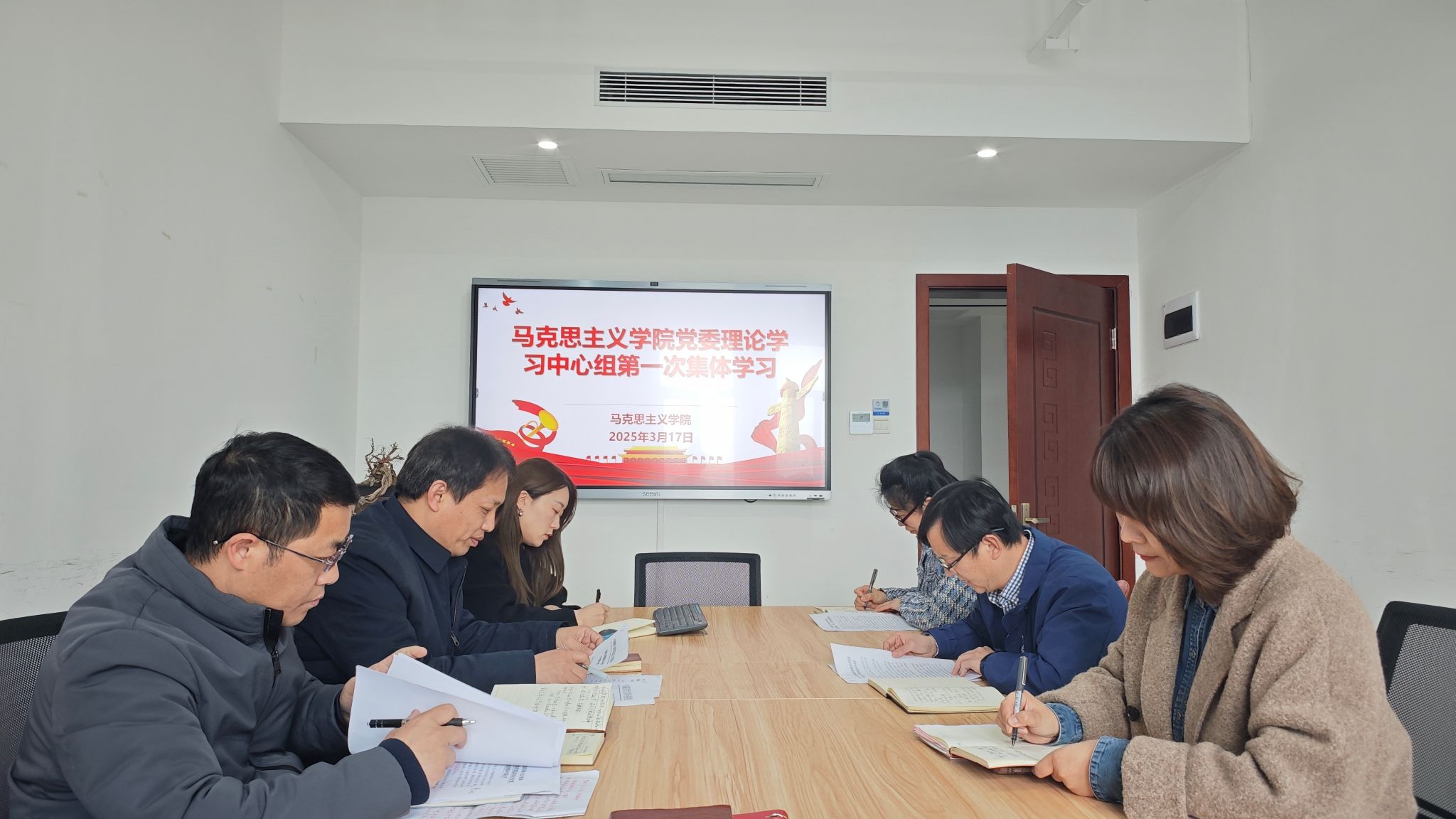 3月17日下午,我院党委理论学习中心组在百熙楼1102会议室开展今年第一次集体学习。学院党委书记曾玉华主持学习,学院党委委员出席。副院长王竹苗作中心发言,其他院领导作交流发言。