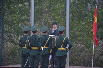 7时,全院师生神情庄重肃穆,国旗护卫队迈着铿锵有力的步伐护送鲜艳的五星红旗来到升旗台前。7时05分,伴随着庄严的《义勇军进行曲》,五星红旗冉冉升起,迎风飘扬,全体师生齐唱国歌,行注目礼。