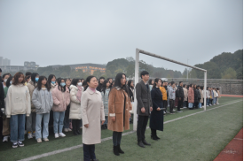 11月30日上午7点,伟德国际victor1946在东方红校区田径场举行升国旗仪式。党总支部书记欧阳斐、副书记谢素科、副院长钟佩君、学工办主任付淑敏,以及马院全体在校学生参加。