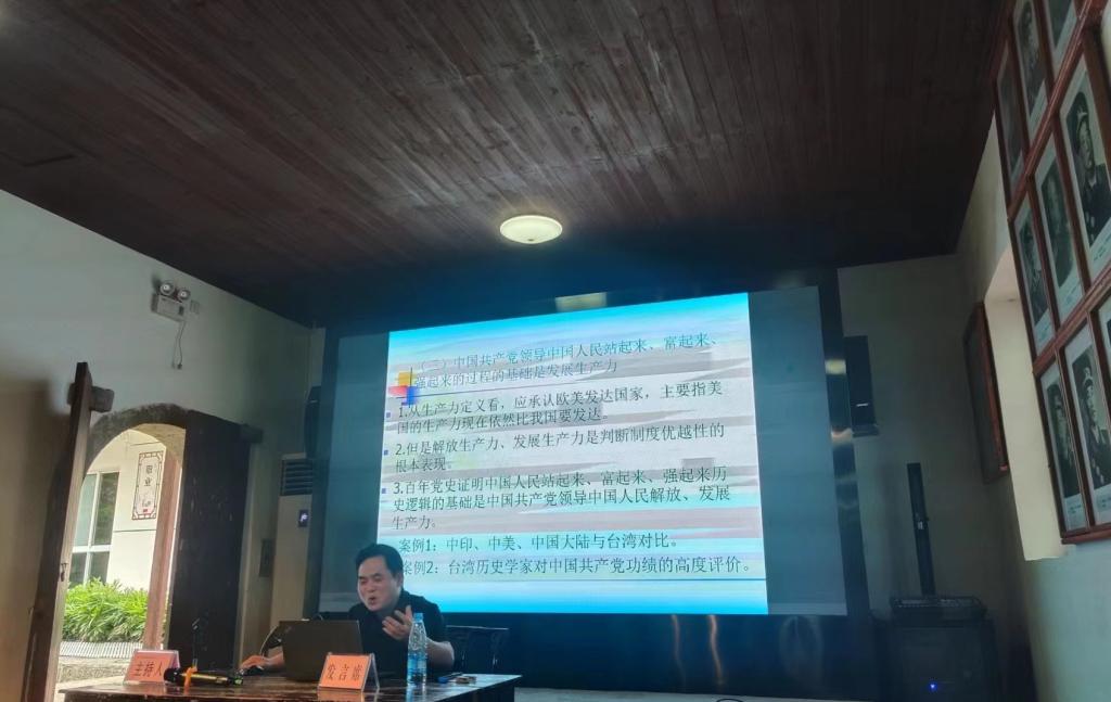 伟德victor1946贺汉魂教授作了《从唯物史观论坚持党的领导——百年党史的哲学透析》专题报告。从唯物史观基本内涵的角度,分析党的领导是历史必然,由此从哲学高度深入讲解中国共产党为什么“能”、马克思主义为什么“行”、中国特色社会主义为什么“好”三大命题的内涵 。讲座独出机杼,论证丰富,兼具政治高度、理论深度、学术精度。