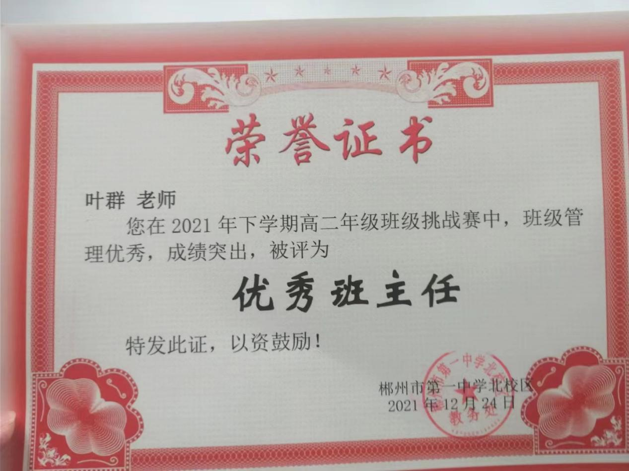光阴沧海,记录匠人匠心;岁月长轴,观照学人之志。叶群以高度的思想觉悟,在教育道路上严格要求自己。习近平总书记说:“只有奋斗的人生才称得上幸福的人生,广大青年应该在奋斗中释放青春激情、追逐青春理想,在艰苦奋斗中净化灵魂、磨砺意志、坚定信念。”因此,一直以来,叶群老师都在思想上和行动上严格要求自己,潜心教学,用心育人。奋斗,让他成为了各项工作当中的“进取者”。入职以来,连续获得多项省、市、校级荣誉。