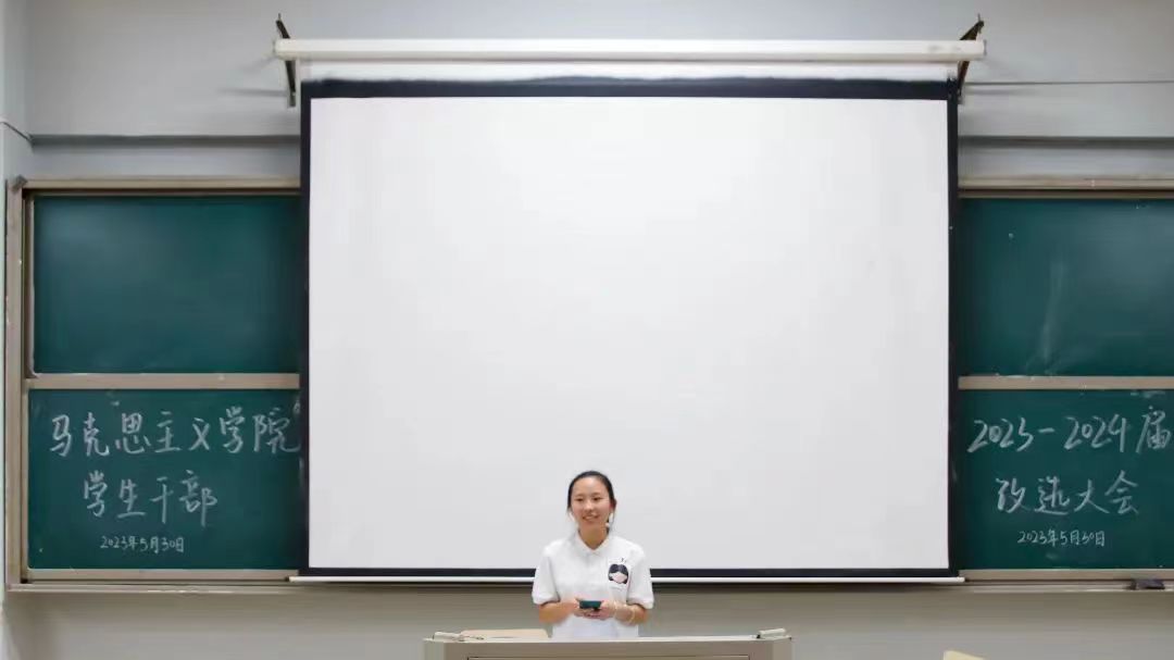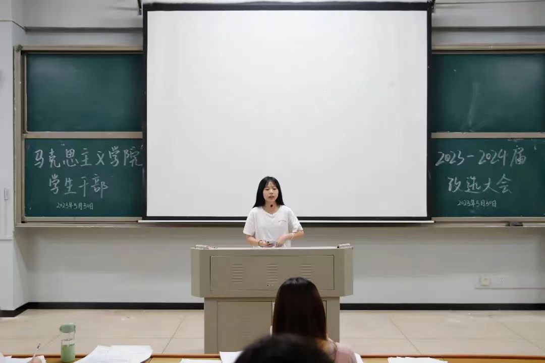 为了进一步加强伟德国际victor1946的学生干部队伍建设,努力开创我院学生管理工作新局面。5月30日晚,2023-2024届马院学生干部换届选举大会于怀中南209报告厅举行。2022-2023届各部门学生干部、大一至大三各班的团支书和班长,以及各位竞选者参加了本次会议,学工办副主任刘艳霓莅临现场指导改选工作开展。
