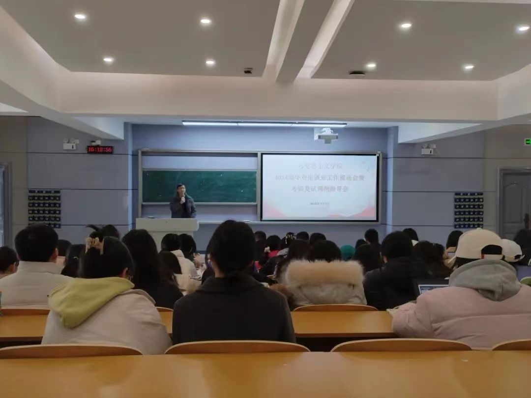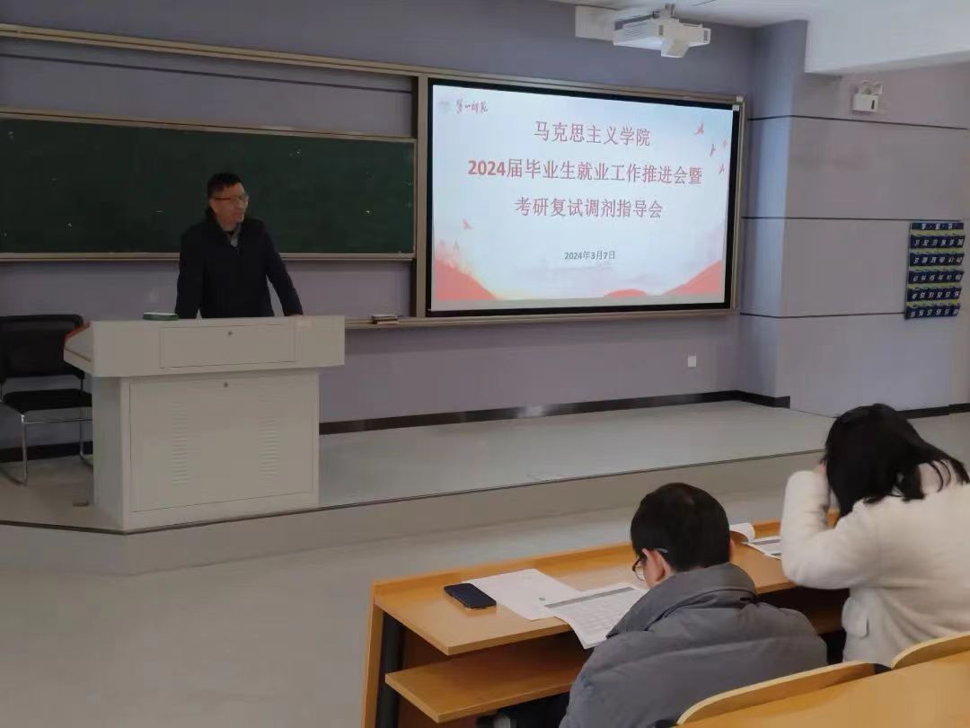 2024年3月7日下午,伟德国际victor1946在润寰南101教室召开2024届毕业生就业工作推进会暨考研复试调剂指导会,学院党委书记阮东彪、院长陈明、副院长王竹苗、副院长胡慧娥、学工办主任于澎、分团委书记刘艳霓出席本次会议,2024届全体毕业生参加会议。会议由党委副书记胡英主持。