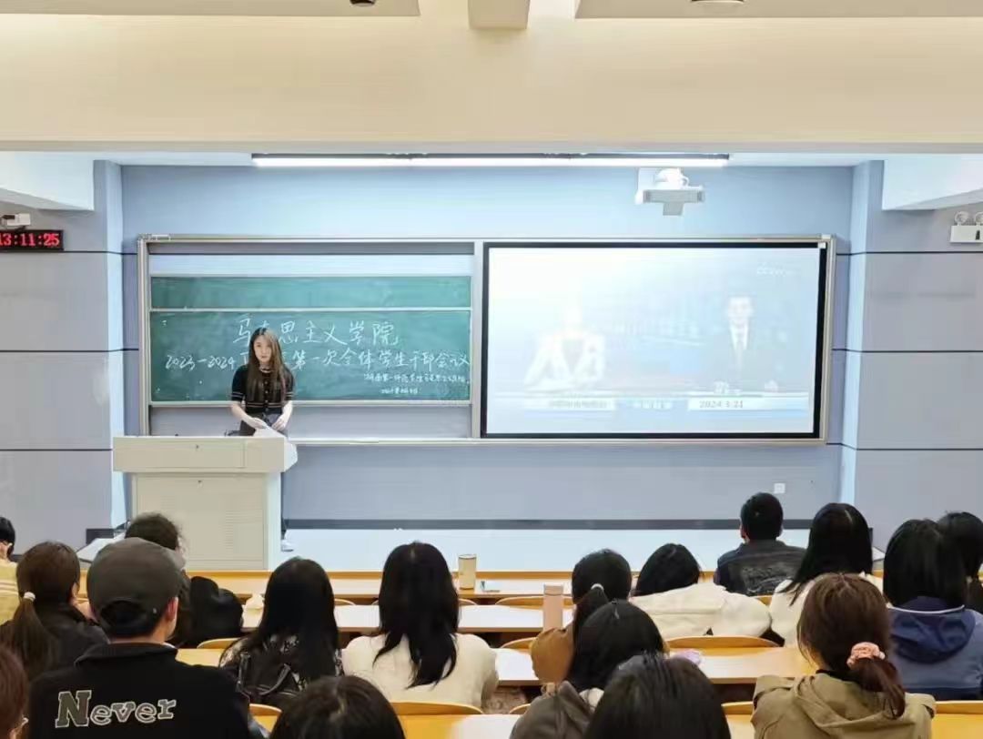 刘艳霓老师作总结发言,希望新学期全体学生干部做到实干笃行,脚踏实地完成各项工作,并对全体学生干部提出三点要求:一是要加强思想引领,落实立德树人的根本任务。将各项活动与思政专业特色、学校红色资源紧密结合起来,强化思想引领、激发新时代青年挺膺担当;二是要加强学风建设,落实学思并进的优良学风。学生干部要不断增强身份意识和精神自觉,以更加严格的标准要求自己,树立朋辈榜样;三是要加强管理效能,落实善作善成的工作作风。各部门要坚持问题导向,坚持压实责任、坚持全面覆盖、坚持务求实效。