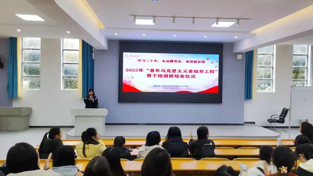 3月20日中午,伟德国际victor1946在玉衡南101教室举行了2022年“青年马克思主义者培养工程”骨干培训班结业仪式,学院党委副书记胡英、学工办副主任刘艳霓出席结业仪式,仪式由何毓涵同学主持,全体青马学院到场参加。