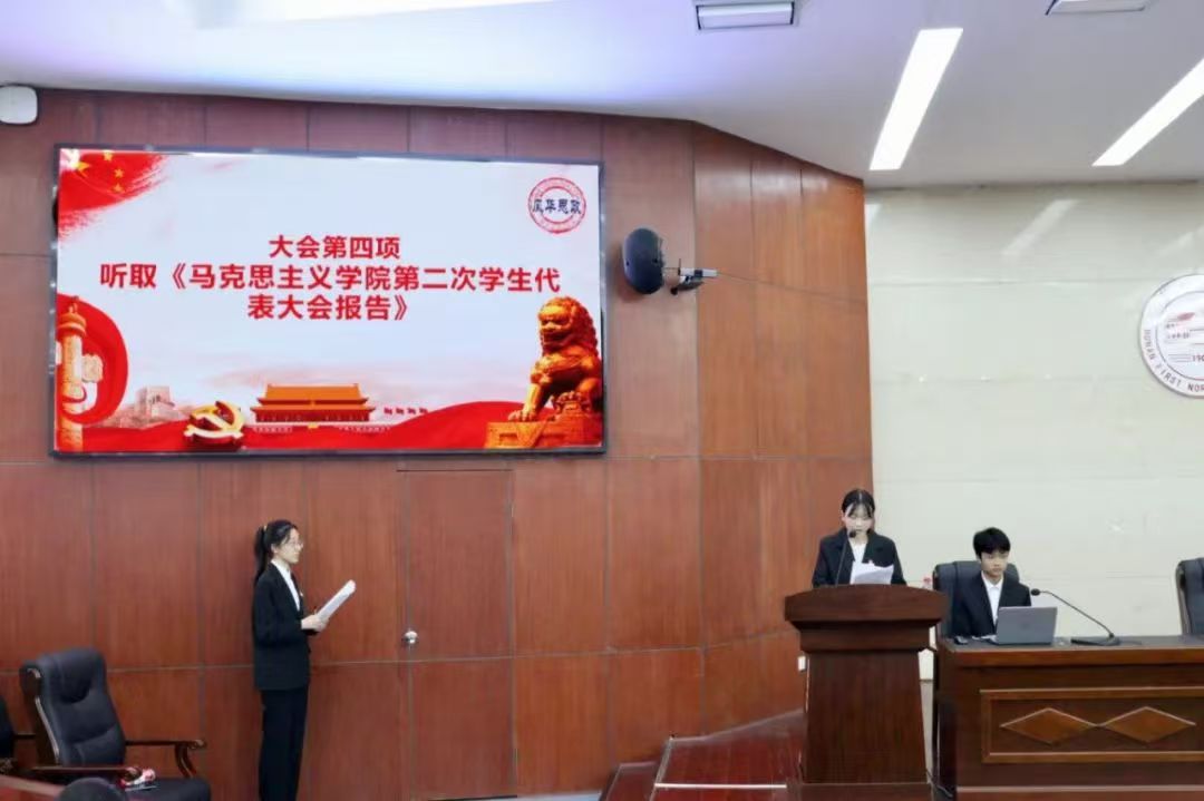 大会即将开始,全体同学奏唱国歌,第一次全体会议于下午15:30准时开始。会议伊始,院党委副书记胡英宣读批复,并热烈祝贺大会召开。随后,校学生会宣读批复。最后,袁雅琴代表伟德国际victor19462023-2024学年学生会作了以“在建设特色鲜明的师范大学进程中凝聚佳‘马’力量 赓续时代华章”为主题的工作报告。报告回顾过去一学年学生会工作,对未来的工作部署作出蓝图规划。