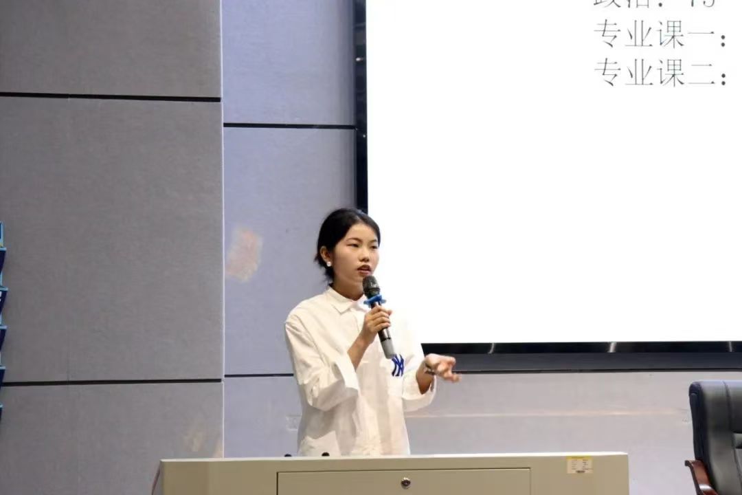 在经验分享环节,2020级优秀考研学生代表蔡雯萱、张嘉怡、朱珊、胡友唯依次为同学们分享她们的考研历程、心得体会和学习方法。