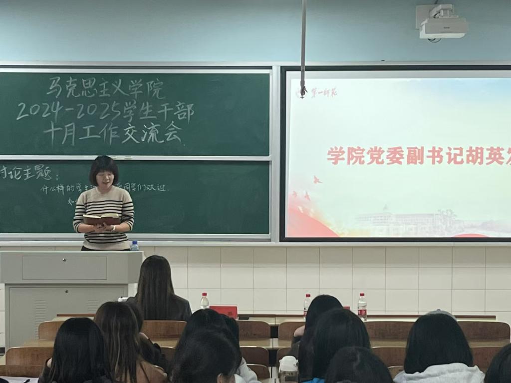 为共同探讨学生工作的新思路、新方法,进一步提高学生干部的工作能力和服务水平,伟德国际victor1946于10月8日下午在怀中南301教室召开学生干部工作交流会,院党委副书记胡英、学工办主任于澎、分团委书记刘艳霓出席,全体学生干部参会。本次交流会由学习部负责人邹书敏主持。