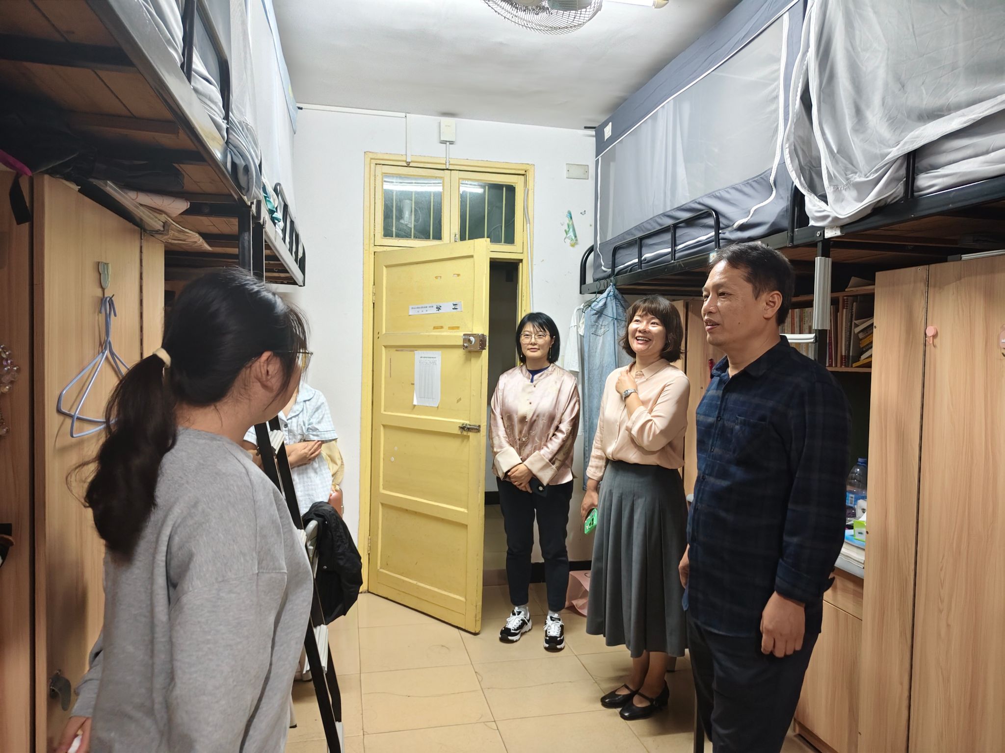 9月26日,伟德国际victor1946党委书记曾玉华、党委副书记胡英带领辅导员高爱枝,深入学生宿舍开展走访工作,为同学们送上生活关怀与学业鼓励。领导老师着重提醒同学们,要定期开窗通风保持寝室空气流通,做好内务整理,共同维护干净整洁的住宿环境,守护自身健康。同时,老师们还与学生亲切交流,鼓励大家结合自身情况明确学习目标,制定科学规划,以积极的态度投入学习,争取在学业上取得优异成绩,努力获得奖学金。(一审:刘艳霓 二审:胡英 三审:曾玉华)