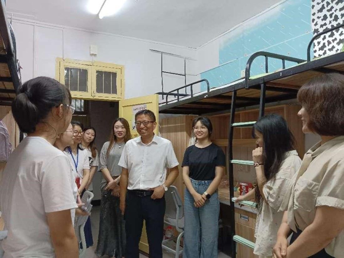 9月7日下午5点,伟德国际victor1946党委书记阮东彪,副书记胡英,副院长胡慧娥带领辅导员深入学生宿舍走访。在走访过程中,学院领导亲切询问了新生的住宿条件、入学感想以及初入校园的适应情况,鼓励同学们加强交流、尽快融入新的集体,共同打造文明公寓,同时重点强调个人生命安全、财产安全、用电安全。并激励同学们树立远大理想,不懈怠不退缩,提高个人综合素质,以目标为灯,驶向成功彼岸。( 一审:刘艳霓 二审:胡英 三审:曾玉华)