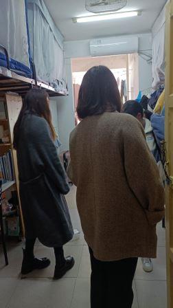 3月7日15:15,伟德国际victor1946党委副书记胡英带领辅导员刘艳霓检查了11栋所有寝室门贴,对不合格者登记,并反馈给宿管部;走访2018级、2019级、2020级、2021级寝室,对内务整理提出要求,提醒寝室每天要开窗通风,非必要不要前往人口密集、人员混杂、空气污染的场所;保持健康的生活习惯,加强体育锻炼;向同学们强调注意用电安全,及时注意插座附近墙体是否有渗水现象,以免造成意外。
